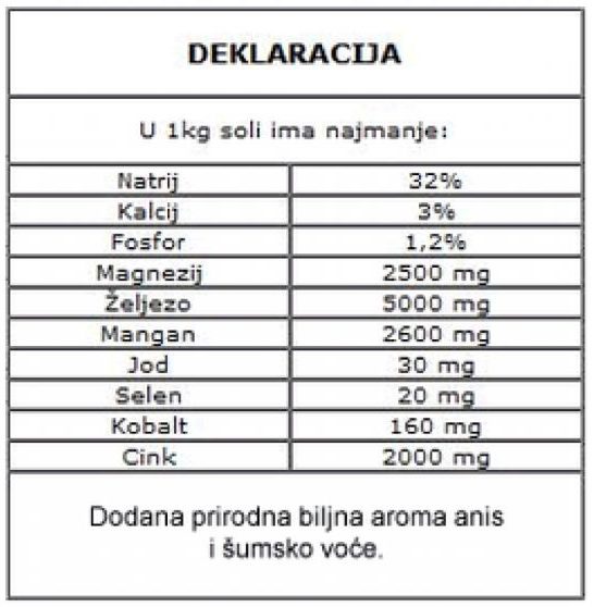 Покрај минералите, во таквата сол се додаваа и некои лекови против внатрешни паразити. Освен што ја задоволуваат потребата од минерали, тие привлекуваат и животни, па затоа задржуваат повеќе во одредени делови од ловиштата.